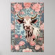 Póster Vaca dulce con fondo floral rosado