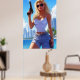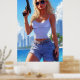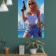 She may have traded flip-flops for firepower, but the sun still shines on her terms. With windswept hair, mirrored shades, and a gaze that says “I don’t miss twice,” she’s the kind of heat Miami wasn’t ready for.
