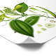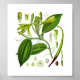 Gran huella botánica de ilustracion vintage de planta de vainilla incluyendo flores, hojas y vainas.