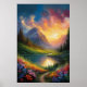 Disfrute del encanto de un valle bajo el sol, obra maestra del arte de la naturaleza. A medida que el sol se sumerge con gracia bajo el horizonte, su cálido resplandor acaricia el valle, iluminando un tapiz de flores coloridas que alfombra la tierra. Las majestuosas montañas vigilan a lo lejos, con sus picos pintados de tonos crepúsculos. Sumérjase en este panorama panorámico, donde la armonía de las flores vibrantes y los picos altísimos crea una escena de belleza sin igual.