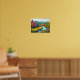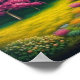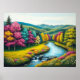 Sumérjase en la impresionante belleza de este fantástico paisaje. Un río sinuoso, que refleja el brillante cielo azul, talla su camino a través de un vibrante valle, que culmina en una encantadora cascada en miniatura. Las riberas de los ríos están en llamas con una extraordinaria variedad de árboles, su follaje ardiendo en tonos fucsia, amarillo dorado, turquesa, naranja profundo y rojo intenso, lo que crea un espectáculo otoñal verdaderamente único. Las exuberantes praderas verdes salpicadas de coloridas flores silvestres se extienden hacia el horizonte, donde suaves y verdes colinas se deslizan bajo un cielo suave y acogedor. Esta obra de arte es una celebración de la paleta más vívida de la naturaleza, que ofrece un sentido de paz, asombro y un escape a un mundo de color puro y sin adulteraciones. Ideal para disfrutar de un ambiente alegre y sereno en cualquier lugar.