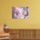 Un globo aerostático solitario flota a través del cañón rosa pálido entre nubes imponentes. El sol, bajo en el cielo pastel, brilla detrás del borde de las nubes, enviando corrientes de luz brillante hacia el espectador.