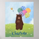 ¡Vamos al Oso Fiesta! Esta impresión de oso confuso pero dulce alegrará el dormitorio o la sala de juegos de cualquier niño. Trae flores y globos. Los colores son pastel y parecen un cuadro acuarela. Este diseño puede ser personalizado.