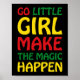 Go Little Girl Make It Happen. citas motivacionales, dichos motivacionales, citas inspiradoras, dichos inspiradores, diseño de tipografía, diseño de colores de reggae. Diseño de Girlie