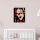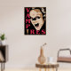 Un poster vampiro a la vieja usanza con un vampiro con ojos rojos y la estaca en el lugar si está en vampiros.