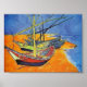 Esta obra maestra del paisaje, titulada Los barcos pesqueros en la playa de Saintes-Maries-de-la-Mer, es realizada por el famoso artista Vincent van Gogh usando tinta, acuarela sobre papel. Está bajo el estilo japonés y fue completado por van gogh en 1888. Vincent van Gogh era un pintor holandés post-impresionista cuyo trabajo, notable por su belleza áspera, honestidad emocional y color audaz, tuvo una influencia de largo alcance en el arte del siglo XX. Aunque su trabajo era conocido por sólo un puñado de personas en su época y apreciado por menos; es uno de los nombres más reconocidos en el arte de hoy. No empezó a pintar hasta los 20 años, completando muchas de sus obras más conocidas durante los dos últimos años de su vida. En marzo de 1886 se mudó a París y descubrió a los impresionistas franceses. Más tarde, se mudó al sur de Francia y se vio influido por la fuerte luz solar que encontró allí. Su trabajo se hizo más brillante en color, y desarrolló el estilo único y altamente reconocible que se hizo realidad durante su estadía en Arles en 1888.