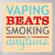Diseño de tipografía sobre el vaping, con el lema "Vaping beats a fumador en cualquier momento" escrito en verde vibrante, rojo y gris. Un mensaje soberbio para el disfrute -y los beneficios- de dejar de fumar a través de la decisión.