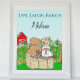 Dibujo a mano de una niña de dibujos animados con sombrero de vaquero sentada junto a un oso de peluche en un fardo de heno arte para habitación de niños. Puedes personalizarlo y agregar/cambiar la cita y cambiar el nombre de la niña.