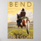 Cowboy & Horse - Bend, Oregon - Vintage Travel Poster fue creado en 2007. Esta imagen muestra escenas de Bend, OR.