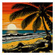 A.I. creé la interpretación contemporánea de una figura solitaria reclinándose bajo la sombra de una palmera, contemplando una pintoresca puesta de sol en la playa donde ha estado varado debido a un naufragio. El cielo está salpicado de vibrantes tonos naranja y rojo, y el mar tranquilo refleja el sol a medida que se cruza con el horizonte con un barco de vela solitario a lo lejos.