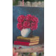 Póster Vase de flores Libros Azules Rosa leyendo vida mue