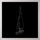 Dibujo de un barco de vela. Un pequeño barco con velas o un bote de vela. La imagen impresa en este elemento se creó a partir de un esbozo que se dibujó utilizando una tableta gráfica.