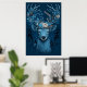 Este poster muestra un hermoso ciervo florido, cuya vista frontal desde el cuello hacia arriba se representa con una técnica de pintura texturizada con un cianotipo. Las flores trenzadas y las hojas de planta se envuelven alrededor de las cuerdas, creando una estética colorida a medida que las cuerdas se extienden hacia arriba. El ciervo parece tranquilo y concentrado, como si escuchara los sonidos de la naturaleza, haciendo que la gente se sienta tranquila y armoniosa. Este poster aporta una experiencia visual única a la audiencia. Con el intrincado tejido de flores sobre las cuerdas y la expresión pacífica del ciervo, presenta un sentido de la belleza de la vida.