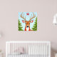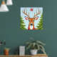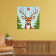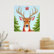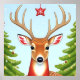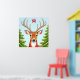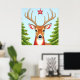 Ilustracion detallado de un ciervo con cuernos en un paisaje sereno y nevado con vegetación y setas.