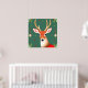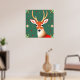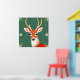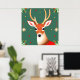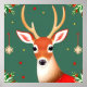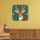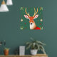 Ilustracion detallado de un ciervo con cuernos en un paisaje sereno y nevado con vegetación y setas.