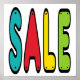 El diseño de la venta presenta letras grandes de diferentes colores "clavados" en el cartel. Para un claro y claro cartel de "Venta".
