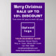 Feliz Navidad! Una de las fiestas más celebradas del año. También es una de las mejores temporadas para promocionar su negocio. poster de personalizable con Navidades Venta, su nombre comercial y otra información. Poster que puede usar como material de marketing para atraer más clientes. Personalizar y muéstralo para convencer a más clientes de que compren sus productos o clientes para que les gusten sus servicios. Los colores de diseño son textos en rosa y blanco sobre fondo morado. Los contenidos son Feliz saludo de Navidad, venta de textos con un porcentaje de descuento que ofrecerás, fechas de venta, nombre de negocio, logotipo, dirección, número de teléfono, correo electrónico y sitio web o página de tu empresa en las redes sociales. Compruebe la apariencia después de cargar el logotipo y escribir textos. Si la apariencia le resulta agradable, puede realizar su pedido ahora. Si necesita redimensionar y mover el logotipo y los textos para que encajen en este poster o en el tamaño y forma que elija, por favor cambie la herramienta de diseño. También puede realizar otros cambios en la herramienta de diseño según la apariencia de este poster que prefiera, como cambiar el color de fondo, el color del tipo de letra y el estilo del tipo de letra. Feliz Navidad! Te deseo más ventas esta fiesta.