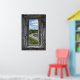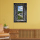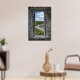 Ventana del Castillo mirando la playa de Sand Esta escena de una playa de arena rodeada de árboles es una de las dos cosas — cuelga ambas fotos que parecen ventanas en la misma pared para crear una maravillosa vista al exterior. El lugar está decorado con un mar que se desmorona suavemente en la arena, donde se pueden ver huellas a lo largo de la playa. La hierba marina y el gorjón yacen bajo la ventana de piedra que fue fotografiada en un auténtico castillo escocés. A lo lejos, se ven las escaleras de piedra que, según se dice, inspiran los "39 escalones".