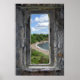Póster Ventana de piedra enmarcada en una playa y árboles