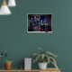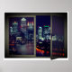 Póster Ventana falsa de vista de ciudad de tiempo nocturn
