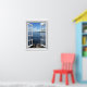 Vista al mar, escena falsa de ventanas, para una pared de oficinas sin ventanas. Divertido, realista poster óptico de ilusión para una oficina o pared de estudio.