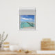 Vista al océano, escenario de ventanas falsas, para un cuarto de baño sin ventanas o pared de oficinas. Divertido, realista poster óptico de ilusión para una oficina o pared de estudio.