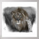 Esta es una pintura digital de una persona pintando un mural de un león en una espalda muscular.