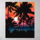 Póster Verano Tropical Naranja Rosa Palm Trees Sunset