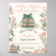Bienvenidos a una ducha de bebé inspirada en un libro de cuentos con este encantador cartel de bienvenida. Con una hilera de libros envueltos en una proa, rodeados de delicadas flores de acuarela en verde suave y melocotón, este diseño marca el tono para una celebración cálida y memorable. ¡Un toque perfecto para una ducha de bebé de temática literaria o de libro!