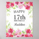 Póster Verde floral rosa Verde blanco Feliz cumpleaños
