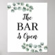 Verde Hoja de Eucalipto El Bar Está Abierto Letrero de Menú de Bar de Boda