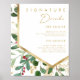 Este moderno cartel de bebidas con firmas blancas con follaje de Navidad es perfecto para tu sencilla boda de invierno boho. Diseñado con lámina de oro geométrica falsa y acuarela botánica minimalista con toques de eucalipto verde y bayas rojas de invierno. Todo sobre un fondo blanco clásico. Estos elementos le dan un toque moderno pero elegante que seguro completará el look que estás buscando. Puedes personalizarlo con tus propias fotos o dejarlo tal como está. Asegúrate de revisar el resto de la colección para completar el tema de tu boda.