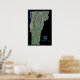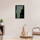 El estado de Vermont desde el espacio está representado en este brillante mapa/huella satelital. Los datos de esta foto satelital han sido mejorados topográficamente para mostrar las características del terreno. Además, este mapa satelital tiene líneas de condado (sin nombres), nombres de algunas de las principales áreas metropolitanas y la bandera del estado.