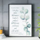 Cita decorativa de la Biblia con hojas sobre fondo blanco y letra manuscrita. Nota importante: No se incluye el marco de la imagen promocional.