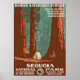 Afiche de época del Parque Nacional de la Secuoia del trabajo original de WPA ahora en dominio público. Una hermosa ventana a un tiempo en el que viajar era una gran aventura, y posters como estos eran poderosas invitaciones para explorar las maravillas del paisaje americano. Este poster, con sus altísimos árboles antiguos, evoca una sensación de belleza intemporal y la grandeza perdurable de una de las creaciones más impresionantes de la naturaleza.