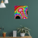 Este poster presenta mi "Viaje Groovy" fractal con formas retro-frescas de los años 70 y colores brillantes de rosa brillante, rojo, naranja, amarillo, azul, verde, morado y negro.