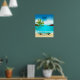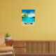 Hermoso afiche de viaje de Oahu Hawaii, dos tortugas lounge en primer plano.
