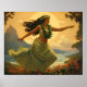 Afiche de Viaje de Vintage Hula Dance Hawái. Hermoso paisaje de Hawaii con el afiche de la Venecia del sol.