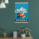 Añada un poco de encanto a su decoración con este poster australiano de viajes con un ilustracion retro de la Ópera y el puerto de Sydney, Australia.