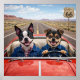 Luna el Boston Terrier y Louie el JackChi se están divirtiendo yendo en un largo viaje sin rumbo con el techo abierto a través de Nuevo México en la histórica Ruta 66.