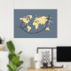 Viajemos ilustracion con mapas del mundo y decoración de aviones sobre fondo azul para todos los que les guste viajar.