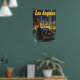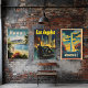 Este afiche de viajes inspirado en la cosecha capta una vista monótona y cinematográfica de Los Ángeles, que combina el antiguo glamour de Hollywood con la intriga cinematográfica. La escena está bañada de sombras dramáticas y tonos mudos (sepia, marina profunda y gris ahumado) que evocan el aspecto de una película noir de los años 40. En primer plano, un hombre solitario con un abrigo de trinchera y fedora se para con la espalda al espectador, parcialmente protegido bajo una brillante farola. Está situado junto a un elegante automóvil vintage con curvas cromadas pulidas y clásicas, lo que sugiere misterio, movimiento y una historia que aún no se ha desarrollado. En el fondo, el icónico horizonte de Los Ángeles brilla a través de una atmósfera nebulosa. Los edificios están decorados con sutiles líneas art decó y suavizados por el nebuloso aire nocturno, con palmeras colocadas sobre las luces de la ciudad. A lo lejos se vislumbra un toque de las Hollywood Hills, basando la escena en una inconfundible tradición de Los Ángeles. Sobre todo, las palabras "Los Ángeles" aparecen en una fuente vintage negrita y amarilla brillante, brillando como un signo de neón o una marquesina de película—llamándose inmediatamente la atención y reforzando el encanto eterno de la ciudad. Este poster es un homenaje perfecto a la L.A. clásica: partes iguales de arenilla y glamour, e ideal para los aficionados a la estética retro, el cine clásico o los coleccionistas de arte de viajes.