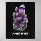 Bring the majestic beauty of nature into your home with this vibrant Amethyst Crystal poster. Showcasing a stunning cluster of deep purple geodes on a sleek black background, it's a perfect wall art piece for enthusiasts. This exquisite poster makes truly unique gifts for gem and mineral lovers, adding a sophisticated and natural touch to any decor.