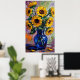 Póster Vibrant Blue & Yellow Sunflower Expressionist