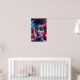 Striking psychedelic portrait of a beautiful woman with glowing neon skin, swirling colorful hair, intense golden eyes, and bold lips. Vibrant blues, pinks, purples, and yellows create a trippy, modern abstract effect. Perfect for bold wall art, bedroom decor, or contemporary home styling.