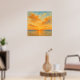 Artwork of sunset horizon over the sea in a watercolor painting style. The sky is ablaze with billowing clouds of deep tangerine, amber, and gold, broken up by patches of brilliant azure blue. Below, the ocean mirrors the fiery sky, blending warm orange reflections with cool, deep teal waters. The sun sits right on the horizon line, casting a shimmering path of light across the waves. This artwork embodies the spirit of an endless summer with its intense, glowing horizon. The rich golds and deep blues evoke memories of tropical getaways and warm sea breezes. This is a high-energy piece perfect for brightening up living rooms, entryways, or any room that needs a splash of vibrant color.