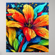 Una fascinante obra de arte floral abstracta con un lirio vibrante en un caleidoscopio de colores. Ideal para añadir un toque moderno a tu estilo (Este diseño hecho con IA). ¡Haga el pedido hoy y acepte la alegría de ir de compras!