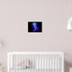 Gran medusa azul, de dibujo artístico, brillante y brillante, con largos tentáculos sobre fondo negro con bioluminiscencia violeta. Luminosas medusas.