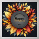 Este elegante poster de Acción de Gracias presenta un diseño central circular con un gradiente de gris oscuro a gris claro, rodeado por una vibrante variedad de hojas de otoño en cálidos tonos amarillos, naranjas, rojos y con toques de morado. Las hojas están dispuestas en un patrón simétrico, creando una frontera festiva e invitante. En el corazón del círculo, el texto dice "La familia Richardson" en un elegante guión en la parte superior, "Feliz Día de Acción de Gracias" en una audaz letra sérica debajo, y el año "20XX" en la parte inferior. El texto de este poster es totalmente personalizable, lo que le permite personalizarlo con su apellido, un mensaje especial y el año en curso. Este diseño único y colorido lo convierte en un complemento perfecto para su decoración de Acción de Gracias, añadiendo un toque personal a sus celebraciones de vacaciones.