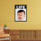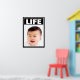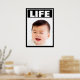 Esta es una hermosa imagen en pro de la vida de un bebé sonriente con pelo oscuro. La palabra LIFE está arriba. Un borde blanco y negro rodea la imagen. Se pueden modificar todo el texto y las fuentes.